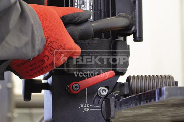 Машина для снятия фаски имеет современный электронный модуль для контроля напряжения, а также систему отключения в случае перегрузки привода, что обеспечивает безопасность оператора, машины и инструмента. Подключение к сети осуществляется с помощью силового провода с вилкой и заземлением.