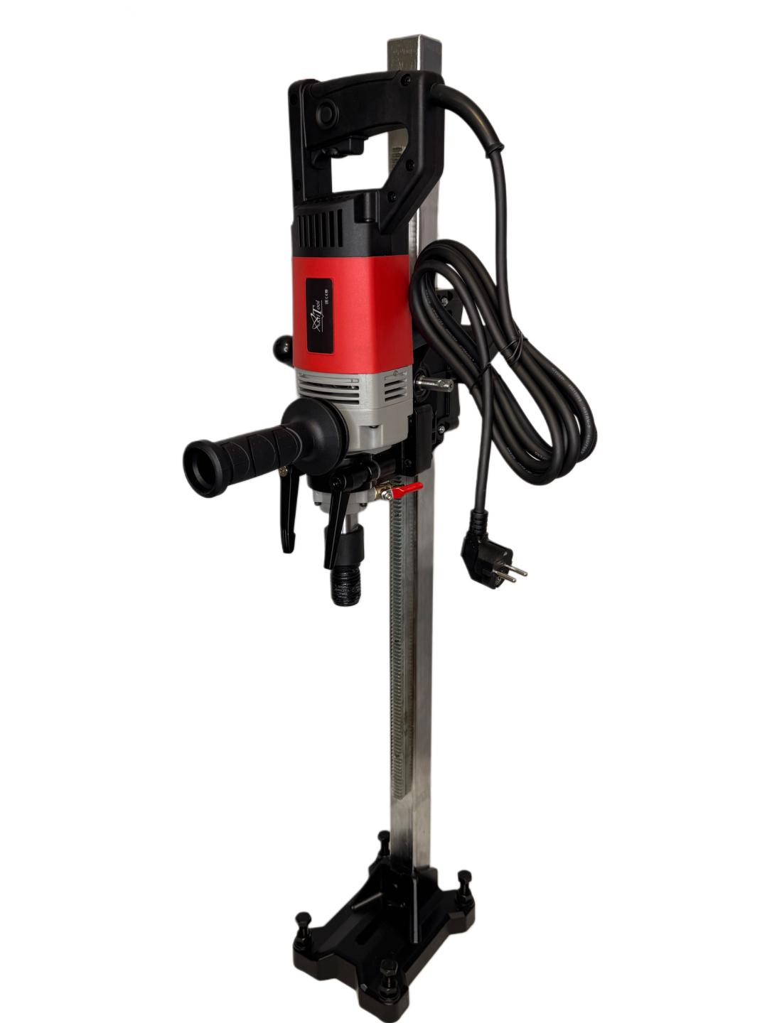 Работать с установкой может один человек, весит всего 12 кг. Установка рекомендуется для сверления мелких отверстий, диаметр отверстия по кирпичу 132 мм, бетону 102 мм.